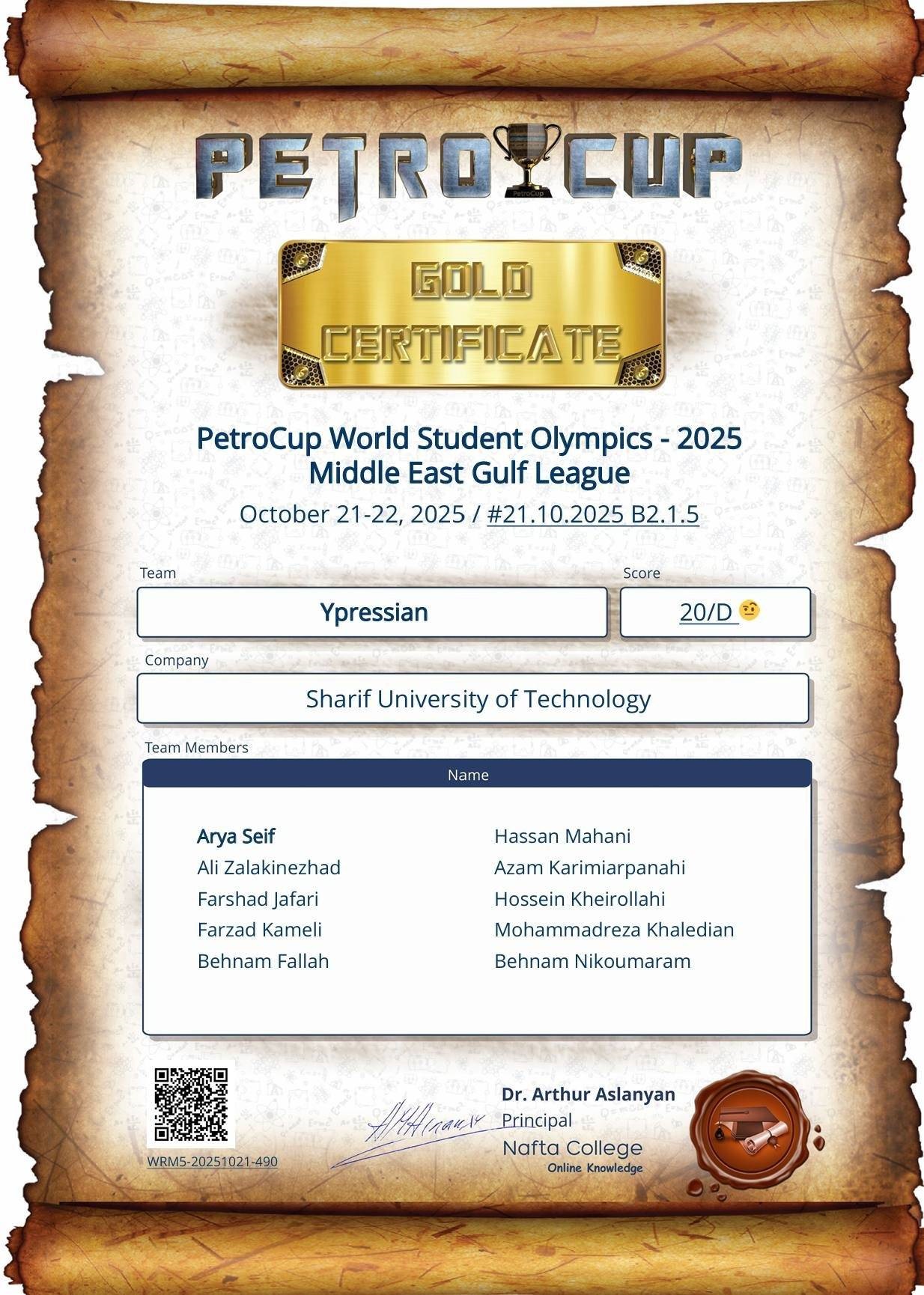 دانشجویان دانشکده مهندسی شیمی و نفت دانشگاه صنعتی شریف با کسب یک مدال طلا و یک مدال نقره در مسابقات جهانی «پتروکاپ»، عنوان قهرمانی این دوره از رقابت‌ها را به دست آوردند.