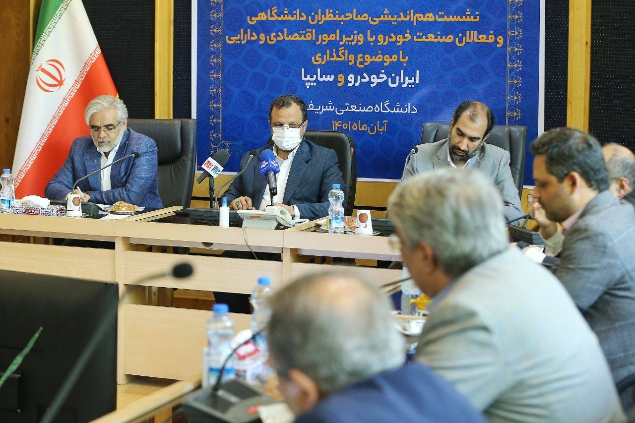 نخستین نشست گفتگوی وزیر اقتصاد با استادان دانشگاه و فعالان صنعت خودرو درباره نحوه واگذاری سهام دولت در ایران خودرو و سایپا طی هفته‌های گذشته در دانشگاه علامه طباطبایی برگزار شده بود.